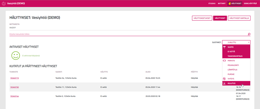 - get alerts on pipe leaks and risks of freezing, backflow and water consumption that exceeds set limits directly on the map
