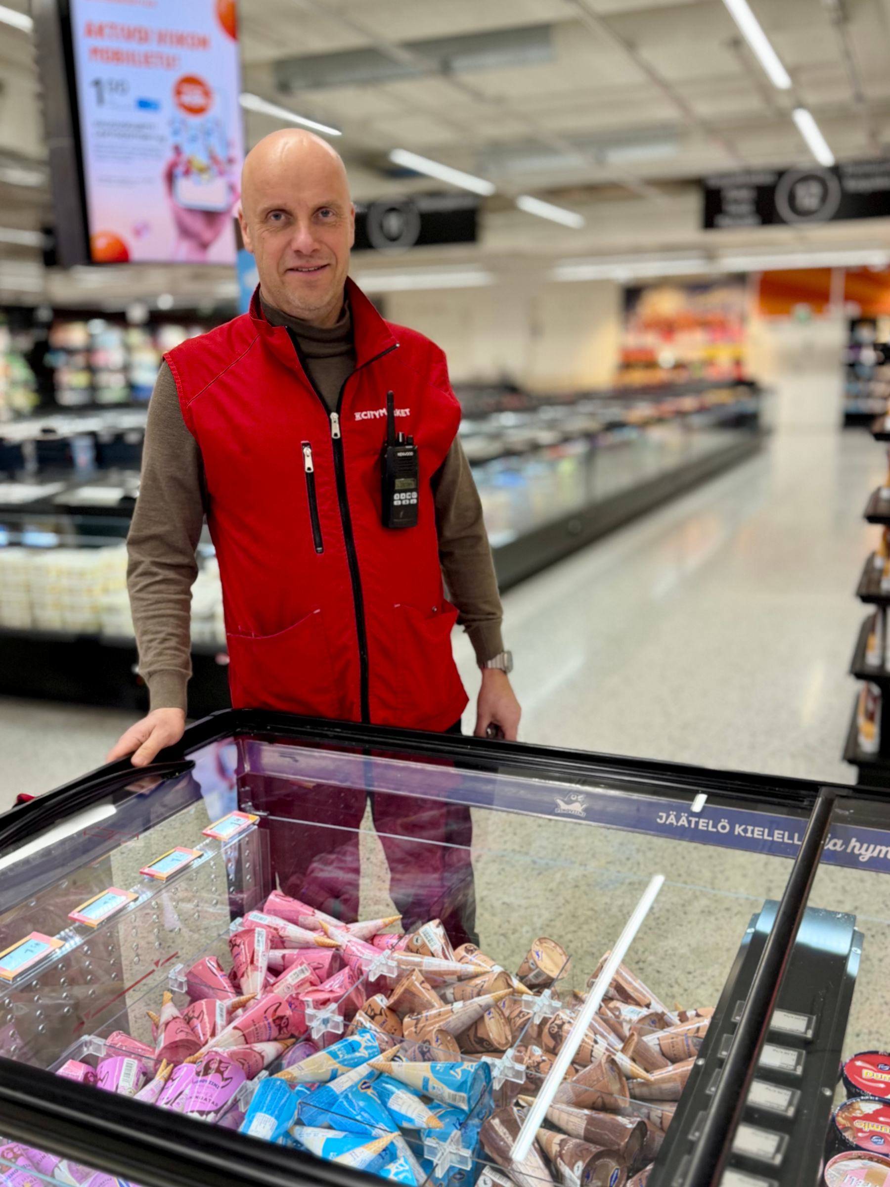”Kaupassamme on sekä isoja keskuskoneellisia kylmäjärjestelmiä sekä pienempiä irrallisia pakastealtaita ja kylmäkaappeja. Molemmissa on nykyisin vuorokauden ympäri tapahtuva lämpötilan valvonta”, kertoo kauppias Luomanen.