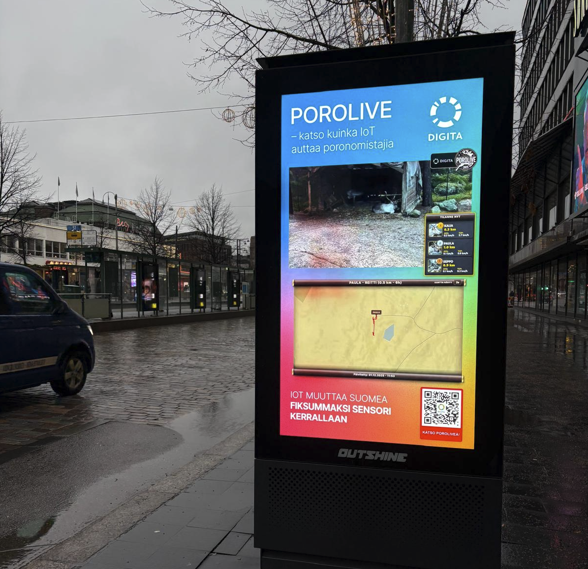 Ansaitun median lisäksi Porolive näkyi keskellä Helsinkiä, kun Outshinen ulkonäytöillä nähtiin livekuvaa Porolivestä.